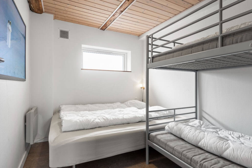 Hyggelig 4 personers lejlighed. Sengene er fordelt på et separat soveværelse med køjesenge og en dobbeltseng med en god madras.