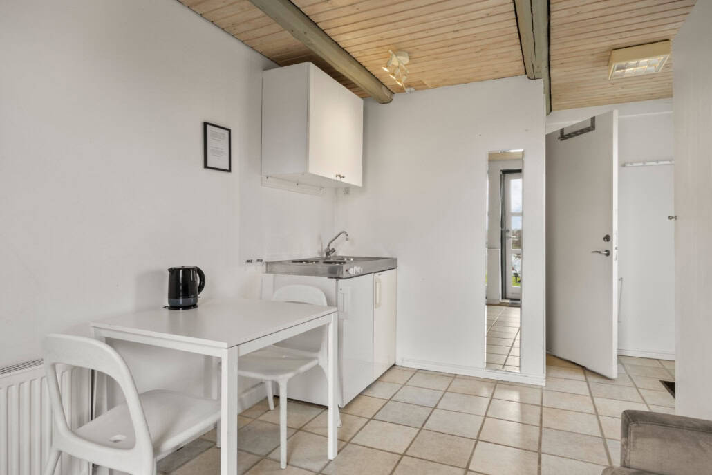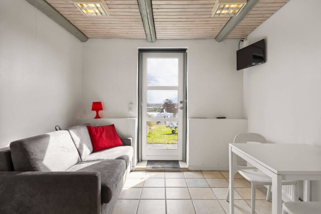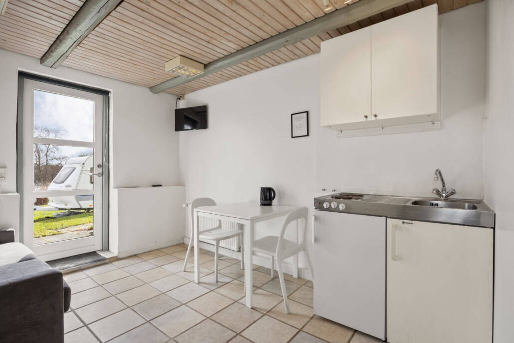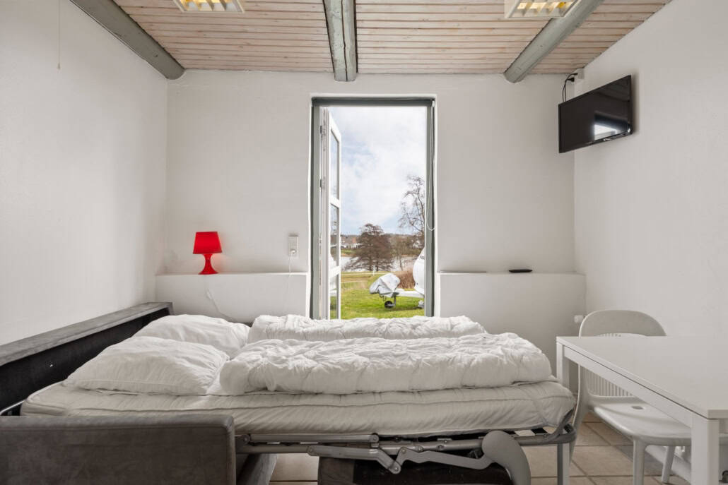 Lille 2 personers lejlighed med udsigt til Pedersborg Badesø. Lejligheden indeholder en stue med dobbelt sovesofa, tv, lille te-køkken med koldt og varmt vand, kaffemaskine, kogekande og køleskab.